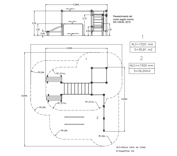 Dimensión: 6,55 x 6,26 x 2,65 m