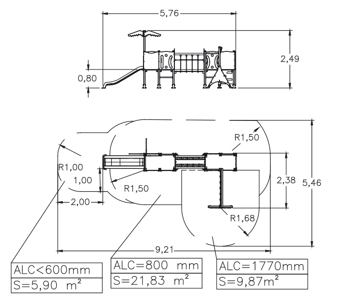 Dimensión: 2,38 x 5,76 x 2,49 m