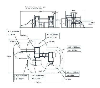 Dimensión: 7,22 x 3,83 x 3,08 m